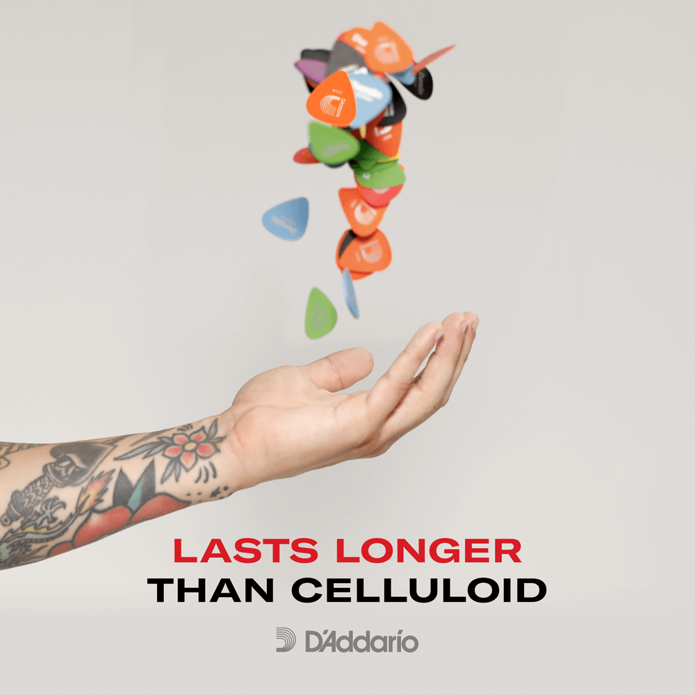 Duralin, also known as acetyl or Delrin, is a remarkable material that offers an exceptional combination of strength, stiffness, dimensional stability, fatigue resistance, and low friction. Commonly used as a replacement for metal bushings and bearings in industrial applications, this highly durable polymer is perfect for guitar picks. Duralin picks help musicians emphasize the bright clicking sound when the pick strikes the strings, making them ideal for acoustic playing, rhythm guitar, and fast single-note passages.