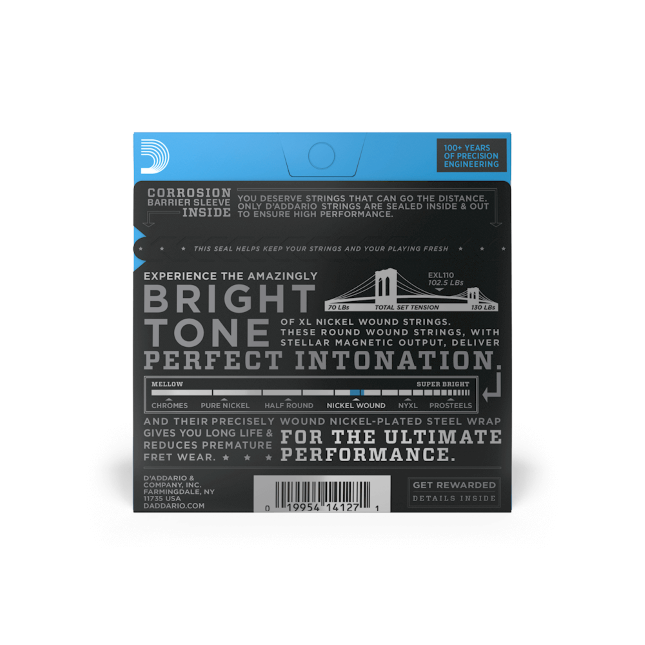 XL Nickel Wound electric guitar strings are the standard against which all other strings are measured. Our best-selling electric set, XL Nickel has been revered by players everywhere since 1974. Made with a high carbon steel core and nickel-plated steel wrap wire, XL Nickel strings have a bright, versatile tone, ideal for a wide variety of musical styles. 10-46 Regular Light strings are our most popular gauge, providing a nice balance of tone and playability.