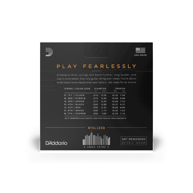 NYXLs will bend farther, sing louder, and stay in tune better than any string you’ve played before. As our premium uncoated electric string, NYXLs offer higher break strength, enhanced tuning stability, and accentuated mid-range frequency response, providing more presence and crunch to cut through the mix. Made with a NY Steel core, premium nickel-plated steel wrap wire, and Fusion Twist technology, NYXL electric guitar strings are tough enough and versatile enough to handle anything. Made for 7-string guitars, this 10-59 Regular Light gauge set takes our most popular gauge and adds an additional bass string.