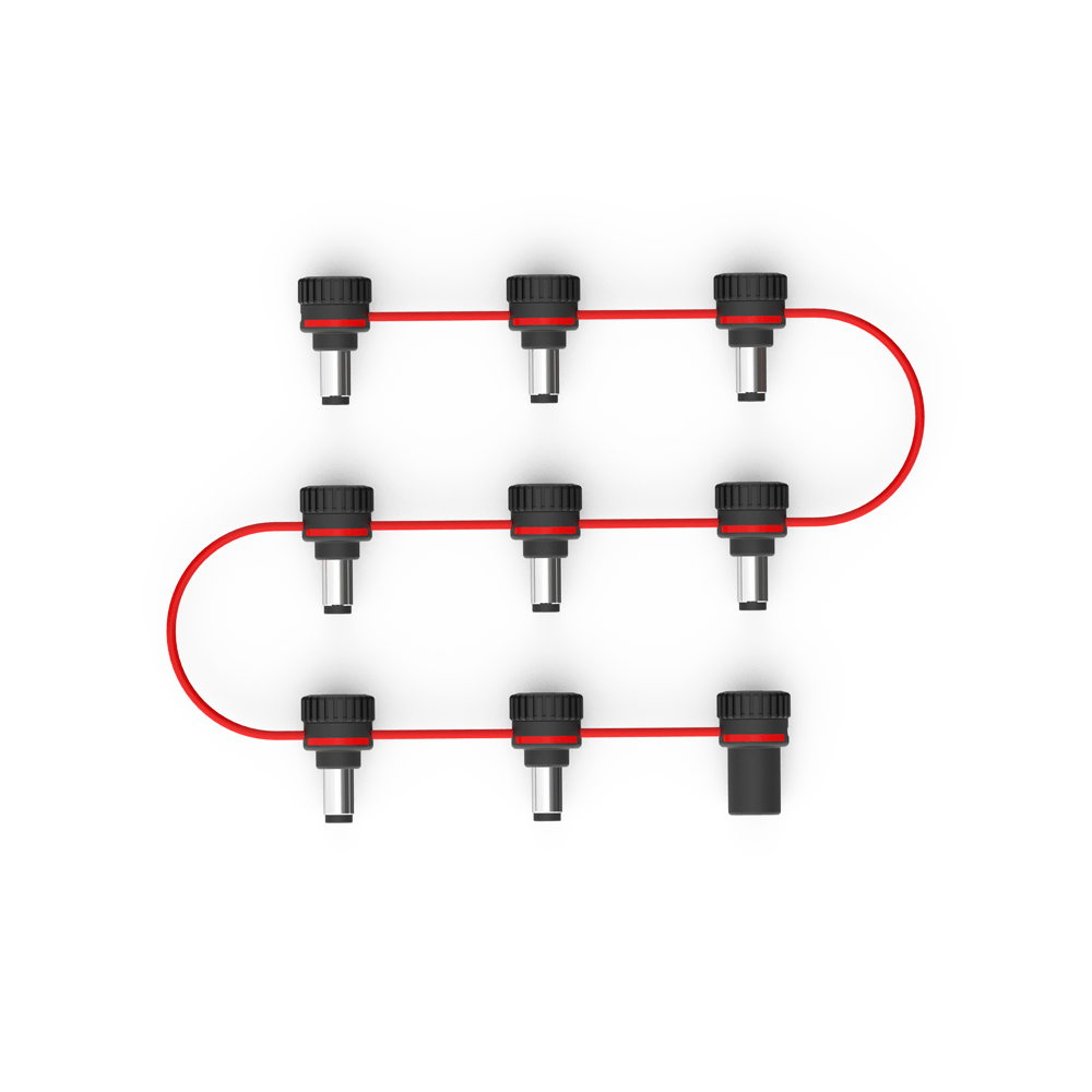 The XPND Adjustable Daisy Chain’s innovative design allows you to customize the placement of each power plug to go exactly where you need it, with the freedom to add, subtract, and move connectors at any time. The self-healing cable ensures durability and long-lasting performance, even with frequent adjustments. Get pro-level board organization without the steep cost of individually isolated power. Use only the connectors you need and never waste a plug because of unique pedal spacing issues. Expand your power with XPND Power Solutions.