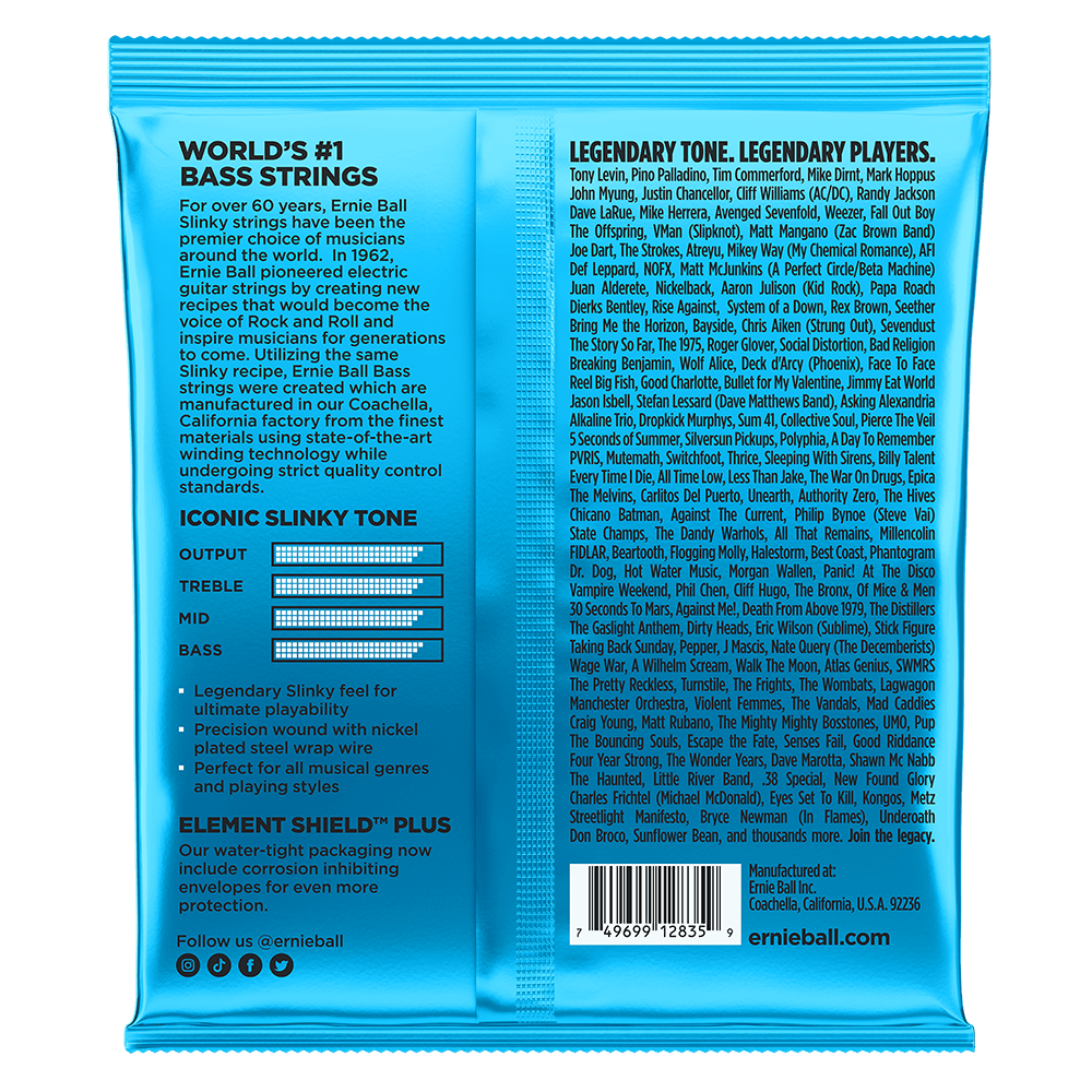 Ernie Ball 2835 Extra Slinky Nickel Wound Electric Bass Guitar Strings – .040-.095