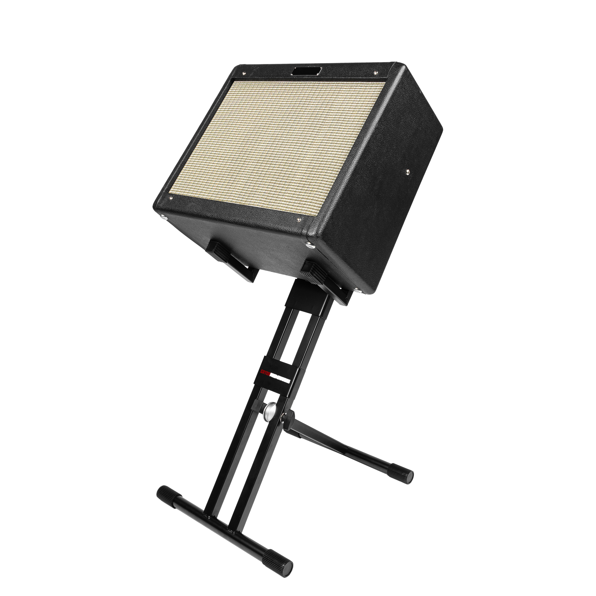 Your tonal quality and volume are commendable; however, it remains puzzling why you are unable to perceive your amplifier’s sound, or why your audience cannot hear you. A straightforward remedy involves elevating your amplifier off the floor, a purpose served by the Gator Frameworks GFWGTRAMP200 high combo amplifier stand. This tall stand elevates your amplifier by up to 30 inches, bringing it closer to ear level. Furthermore, the GFWGTRAMP200 permits tilting the amplifier backward, directing the sound more effectively toward you. Additionally, many guitarists at GN Music appreciate the GFWGTRAMP200 for its high degree of adjustability, allowing secure height setting and tilt-back angle customization to best accommodate your stature.