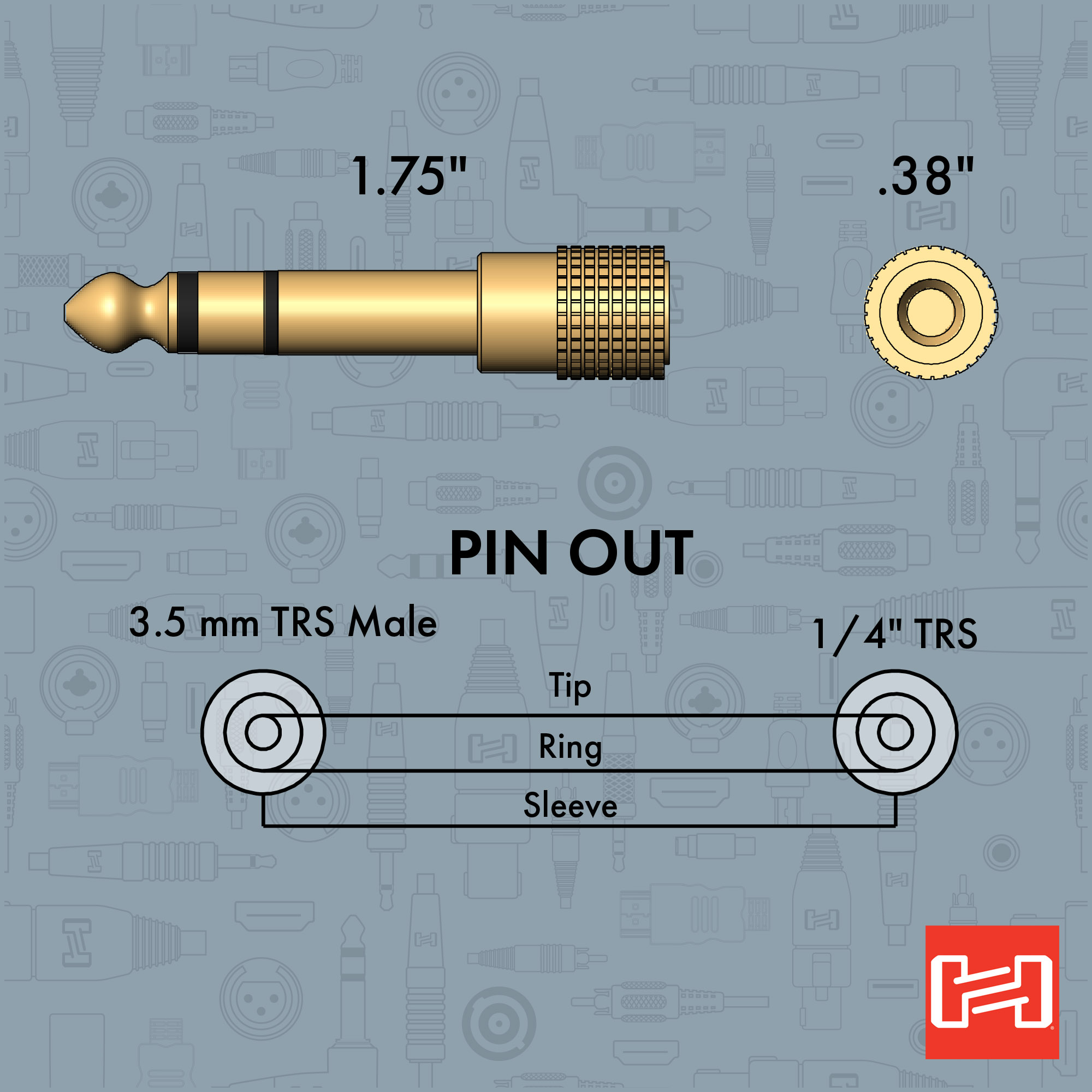 Connectors:Â 3.5 mm TRS to 1/4 in TRS