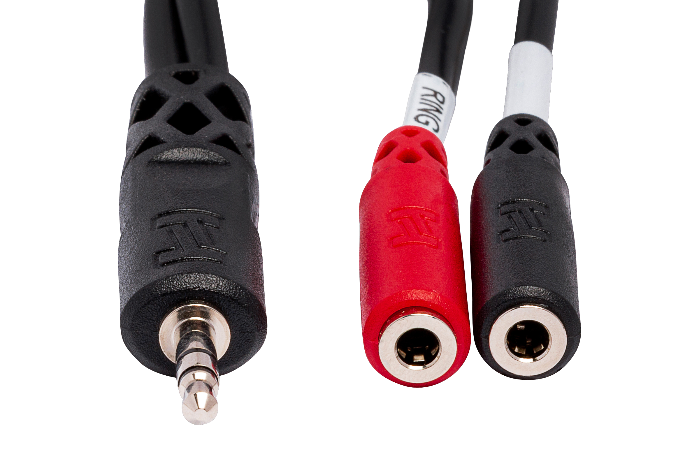 The Hosa Stereo Breakout cable is designed to split a stereo signal. Black- and red-coded mini mono phone plugs indicate left and right respectively.